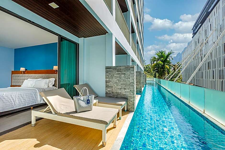 The spacious quadruple room features air conditioning, a seating area, a balcony with pool views as well as a private bathroom boasting a bath. The unit has 3 beds.